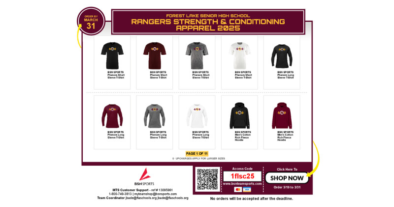 FOREST LAKE SENIOR HIGH SCHOOL - Rangers Strength & Conditioning Apparel 2025 Hurry, shop closes 03/31/2025! Strength & Conditioning Store!